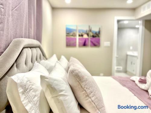 🌸 Things to Do Near Violet Escape – Your Peaceful Richmond Hill Getaway Explore Richmond Hill like a local! Check out our digital Guidebook for even more curated recommendations. Outdoor Escapes: ★ Wander through the scenic trails at Richmond Green Park ★ Get fresh air at Phyllis Rawlinson Park ★ Enjoy the serene waterfront at Lake Wilcox Park ★ Unwind with a relaxing day at The Wave Pool ★ Explore beautiful conservation areas throughout York Region Cultural Gems: ★ Catch a show at the Richmond Hill Centre for the Performing Arts ★ Visit the Richmond Hill Heritage Centre ★ Discover local shopping & dining along Yonge Street ★ Explore astronomy nights at the David Dunlap Observatory Rest & Recharge: ★ Shop, dine & unwind at Hillcrest Mall ★ Grab coffee or pastries at charming local cafés ★ Hit the greens at nearby golf clubs like Beaverbrook or Summit Golf Club ★ Visit the popular Times Square Plaza for dining and entertainment Thrill & Adventure: ★ Family fun at Sky Zone Trampoline Park ★ Hit winter slopes at Uplands Ski Centre ★ Bowling, arcades & indoor entertainment just minutes away ★ Explore nearby Markham attractions like Pride of Canada Carousel 💜 Unwind in Style at Violet Escape – Stylish 1BR/1BA Suite in Richmond Hill, Ontario Welcome to Violet Escape—a tranquil lavender-inspired retreat designed for comfort, relaxation, and effortless convenience. This modern 1-bedroom suite is perfect for couples, business travelers, or small families seeking a peaceful stay with all the essentials. ★ Soft lavender touches for a calming, boutique atmosphere ★ Ultra-fast WiFi – perfect for remote work or streaming ★ Fully equipped kitchen for easy home-cooked meals ★ Elegant open-concept dining & living area ★ Spacious Smart TV for cozy nights in ★ Additional twin bed available upon request for extra guests ★ Rest easy on a plush queen-sized bed with high-quality linens Located in a quiet, family-friendly neighbourhood just minutes from dining, shopping, parks, and major highways, Violet Escape offers the perfect blend of serenity and convenience—whether you're here for work, travel, or a peaceful weekend away. Book your stay now – and elevate your experience at Violet Escape.